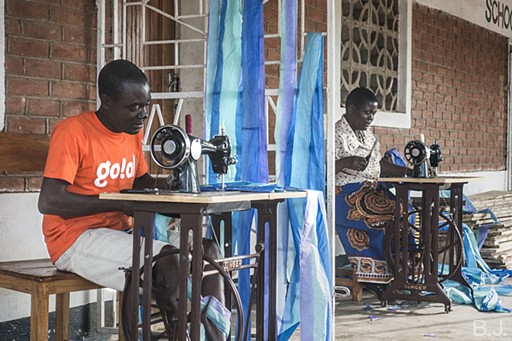 A young tailor works through to the end of the day. These are the skilled hands that will help us recycle non-flyable paragliders into practical bags, kites, hammocks etc. :)